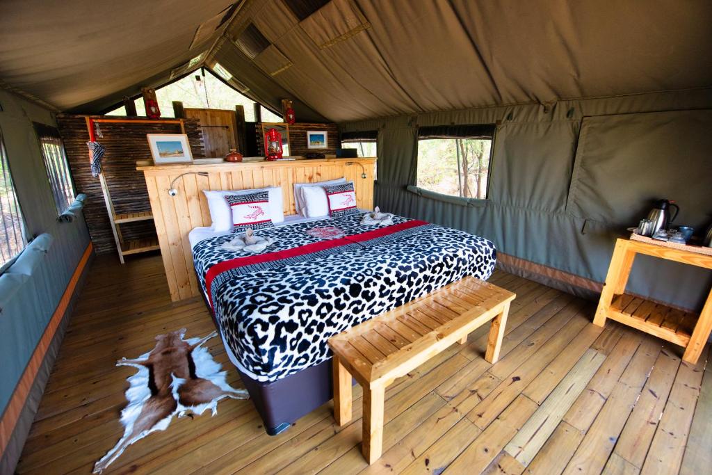 "L’emplacement au calme, en pleine nature. Le même établissement au milieu d’animaux sauvages auraient été un top. Les tentes sont superbes, bien agencées et superbement étudiées. On se sent à l’aise. Restauration excellente, personnel avenant et souriant."