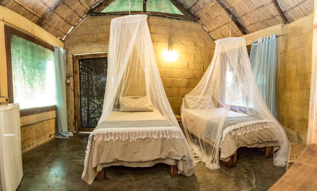 "Beautiful place. Next to the beach, palm trees, mangroves. Huts in local style with Mosquito-nets, etc. Little pool. Bar with cool beverages... Very nice & helpful staff. They assist with excursions, etc. Obrigado!"