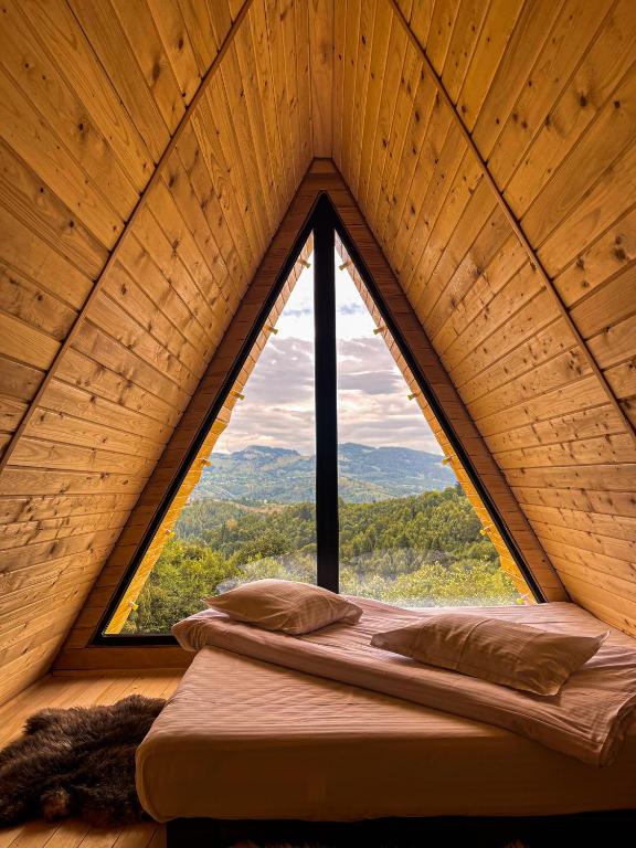 "Because the weather was not favorable, the location was perfect for us. We stayed 2 nights in Cabin no. 3 (perfect for a couple) where the view from the bed is breathtaking. In terms of cleanliness, it was impeccable. The living room and kitchen are practical, equipped with everything you need: electric stove, microwave, refrigerator, coffee machine with capsules, dishes, cutlery, even a nice fireplace. The bed was comfortable, with impeccable bedding. Overall, the Cabin is beautiful, clean, intimate and definitely worth a return. We really enjoyed our stay."